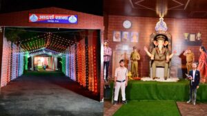 इन्हीं में से एक अनोखा पंडाल ओमती थाना पुलिस क्वार्टर, घंटाघर स्थित है, जहां भगवान गणेश खाकी वर्दी (Ganpati Idol as DGP) में पुलिस महानिदेशक (DGP) के रूप