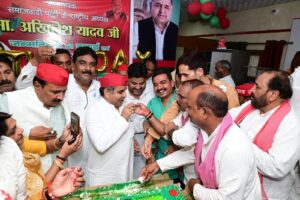 आजमगढ़:समाजवादी पार्टी कार्यालय में धूमधाम से मनाया गया अखिलेश यादव का 52वां जन्मदिन, 52 किलो का केक काटकर कार्यकर्ताओं ने दी शुभकामनाएं