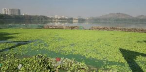 भिवंडी के वारालदेवी तालाब में फैला हरा कचरा और दुर्गंध, स्थानीय नागरिक परेशान
