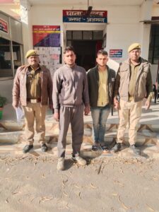 आज गुरुवार को मुखबिर द्वारा सूचना दिया गया कि दो चोर एक पल्सर गाड़ी से इरनी स्कूल से चोरी हुए बैट्री के साथ मार्टिनगंज से कुर्थुवा बर्रा होते हुए जौनपुर जाने वाले है। उक्त सूचना पर विश्वास कर उ0नि0 जुबेर अहमद मय हमराह द्वारा बर्रा चौराहे से 02 अभियुक्तों 1. नीरज मिश्रा पुत्र प्रमोद मिश्रा ग्राम किसुनदासपुर थाना जैतपुर जिला अम्बेडकर नगर 2. शिवांश तिवारी उर्फ शिवांसू पुत्र रामकुमार तिवारी ग्राम बेहजादपुर थाना जैतपुर जनपद अम्बेडकर नगर को एक अदद लुमिनश बैट्री सम्बन्धित मु0अ0सं0 365/24 धारा 331(4),305,317(2) बीएनएस, आवला तेल, ग्लो लवली क्रिम, पोन्डस पाउडर 930/- रुपया सम्बन्धित मु0अ0सं0 390/24 धारा 331(4),305,317(2) बीएनएस , चोरी के मोबाइल विक्रय से प्राप्त पैसो में से शेष 900/- रुपया सम्बन्धित मु0अ0सं0 269/24 धारा 303(2),317(2) बीएनएस के साथ समय करीब 12.55 बजे गिरफ्तार किया गया। गिरफ्तार अभियुक्त का चालान माननीय न्यायालय किया गया।