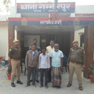 पुलिस के अनुसार 12 फरवरी को व.उ.नि.मिथलेश कुमार मय हमराह द्वारा चेकिंग के दौरान रसूलपुर गोसाई की बाजार मेन हाइवे के पास से जुआ खेल रहें 04 व्यक्ति 1.जमालुद्दीन पुत्र स्व.सुकुरुल्ला निवासी ग्राम रसूलपुर बाजबहादुर थाना गम्भीरपुर जनपद आजमग उम्र लगभग 58 वर्ष जामा तलाशी से प्राप्त कुल 2300 रूपये जिसमे 500 रूपये की 04 नोट व 03 नोट 100 रूपये की 2.इरशाद पुत्र स्व.किताबुद्दीन निवासी ग्राम रसूलपुर बाजबहादुर थाना गम्भीरपुर जनपद आजमग उम्र 45 वर्ष की जामा तलाशी से कुल 3150 रूपये जिसमे 500 रूपये की 05 नोट ,100 रूपये की 06 नोट , 50 रूपये की 01 नोट 3 .मोहम्मद इश्लाम पुत्र स्व.मुस्ताक अहमद निवासी ग्राम रसूलपुर दयद्रथयति थाना गम्भीरपुर जनपद आजमग उम्र 57 वर्ष जामा तलाशी से 1000 रूपये जिसमे 100 रूपये की 10 नोट 4.तरुण पुत्र स्व.आद्या दूबे निवासी अहिरौली थाना मेहनगर जनपद आजमग उम्र करीब 53 वर्ष जामा तलाशी से 3000 जिसमे 200 रूपये की 08 नोट ,500 रूपये की 02 नोट , 100 रूपये की 04 नोट बरामद हुआ मौके पर माल फड़ को वही से प्राप्त एक सफेद रंग के गमछा में 52 अदद ताश के पत्ते व फड में प्राप्त पैसे 8200 रूपये बरामद हुए। जिसके सम्बंध में थाना स्थानीय पर मु0अ0सं0 46/2025 धारा 13 जुआ अधि0 पंजीकृत कर अग्रिम कार्यवाही प्रचलित है।
