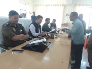 संपूर्ण समाधान दिवस के अवसर पर आज 12.45 देर से पहुंचे जिलाधिकारी आजमगढ़ नवनीत सिंह चहल पुलिस कप्तान हेमराज मीणा ने फरियादियों की फरियाद सुनना शुरू किया जिलाधिकारी को राम आशीष मौर्य महुआरा खुर्द ने प्रार्थना पत्र देकर के आरोप लगाया कि महुआरा बाजार में हमारा रोड पर घर है घर के सामने रामचेत राजभर 15 वर्षों से लोहे की गुमटी रखकर के सामने की सहन बंद कर दिया है चार बार समाधान दिवस और दो बार कमिश्नर के यहा प्रार्थना पत्र दिया लेकिन कोई कार्यवाही नहीं हो हुई|