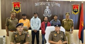 आजमगढ़ : शहर कोतवाली पुलिस ने हीरापट्टी के पास से पटखौली निवासी राजेश पाठक की हत्या के मामले का एसपी हेमराज मीणा ने पुलिस लाइन में खुलासा किया। प्रेस वार्ता में 4 लोगों को गिरफ्तार करने की जानकारी दी। चारों को मीडिया के समक्ष पेश किया गया। 33 वर्षीय रविंद्र सिंह उर्फ संतोष सिंह उर्फ़ साधू सिंह पुत्र वीर बहादुर सिंह निवासी लखुवा प्रधानपुर थाना रसड़ा जनपद बलिया हाल पता बिलरिया की चुंगी थाना कोतवाली आजमगढ़, 46 वर्षीय हरिकेश चौहान पुत्र सूर्यनाथ चौहान निवासी शेखपुरा थाना कोतवाली आजमगढ़, 20 वर्षीय मोहम्मद फैसल पुत्र अब्दुल मन्नान निवासी आर्य नगर थाना जीयनपुर व 22 वर्षीय विजय सिंह उर्फ बंटी पुत्र चंद्रभूषण सिंह निवासी खेमऊपुर थाना सिधारी को गिरफ्तार किया गया। एसपी ने बताया कि गिरफ्तार अभियुक्त रविन्द्र सिंह उर्फ संतोष सिंह उर्फ साधू सिंह ने पूछताछ पर बताया कि राजेशचन्द्र पाठक से मैंनें 15 लाख रूपये | उधार लिया था। और अपने साथी हरिकेश चौहान को भी 15 लाख रूपये उधार दिलवाया था। जिसका 1.5 लाख रूपये प्रतिमाह व्याज दिया करता था। इधर कुछ दिनों से व्याज न दे पाने के कारण राजेशचन्द्र पाठक मुझे व हरिकेश चौहान को पैसा वापस करने के लिए डराते धमकाते थे। तथा बीच बीच में घर जाकर भी भला बुरा कहते। हमलोगों को यह बात बहुत ही खराब लगती थी। बार बार कहने पर कि जल्द ही पैसा वापस कर देंगे, इसपर राजेशचन्द्र पाठक जहाँ कहीं भी मिलते थे भला बुरा कहते थे। इस बात को मैंनें अपने भांजे भोला सिंह पुत्र नरेन्द्र सिंह उर्फ पिंकी निवासी हरसिंह पुर थाना जीयनपुर व उसके दोस्त चन्द्रभूषण सिंह उर्फ चन्दू पुत्र रामआशीष सिंह निवासी हरसिंहपुर थाना जीयनपुर जनपद आजमगढ़ को बतायी। इसी बात को लेकर हमलोगों नें मिलकर राजेशचन्द्र पाठक को रास्ते से हटाने की योजना बनायी। दिनांक 7 फरवरी 25 को योजना के तहत हमलोगों नें राजेशचन्द्र पाठक को फोन से प्लाट दिखाने के लिए उकरौड़ा बुलाया। जहाँ पूर्व योजना के तहत भोला सिंह, चन्द्रभूषण सिंह उर्फ चन्दू अपने साथी मोहम्मद फैसल पुत्र अब्दुल मन्नान निवासी आर्यनगर थाना जीयनपुर आजमगढ़ व विजय सिंह उर्फ बन्टी सिंह पुत्र स्व0 चन्द्रभूषण सिंह निवासी खेमउपुर थाना सिधारी आजमगढ़ के.साथ ब्रेजा कार से उकरौड़ा प्लाट स्थल पर पहुँचे। जहाँ राजेशचन्द्र पाठक को पैसा गिनने के बहाने गाड़ी में बैठा लिया और गाड़ी को लेकर जीयनपुर की तरफ जाते समय रास्ते में कार में ही चन्द्रभूषण सिंह उर्फ चन्दू , भोला सिंह व मोहम्मद फैसल ने मिलकर नायलान की प्लास्टिक की रस्सी से राजेशचन्द्र पाठक का गला दबाकर मार दिया और शव को छिपाने के दृष्टि से जीयनपुर मोहम्मदाबाद बार्डर के