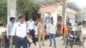 Azamgarh:Strictness was exercised while creating awareness for road safety under the No Helmet No Fuel campaign in