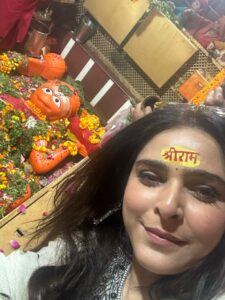 Although she missed taking the dip, she got an opportunity to do a beautiful darshan of the supreme Bajrangbali & not just that, her devotion towards Shri Ram can be seen on her forehead as well. Check out the photos below –