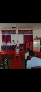 डॉ. सीमा बी. सैंदाणे हे भारतीय राज्यघटनेची ओळख या विषयावर मनोगत व्यक्त करताना म्हणाले की, मानवी समाज भटकंती थांबून स्थिर झाला, समूहाने राहू लागला. समूहाने राहत असताना समूहाच्या संरक्षण व कल्याणासाठी काही नियमांची आवश्यकता भासू लागली. ते नियम सुद्धा तत्कालीन काळातील संविधानाचे प्राथमिक रूप असावे असे मत मांडले. भारतीय संविधानाची ओळख करून देत असताना क्रिप्स मिशनपासून तर अलीकडील काळात झालेल्या संविधान दुरुस्ती पर्यंतचा धावता आढावा त्यांनी घेतला. संविधान सभा ही दूरदृष्टीची होती म्हणूनच संविधान सभेने ३९५ कलमे व ८ परिशिष्टाचे संविधान २ वर्षे ११ महिने १८ दिवसात लिहून पूर्ण केले. २६ नोव्हेंबर १९४९ रोजी संविधान तयार झाले. परंतु त्याची अंमलबजावणी २६ जानेवारी १९५० पासून भारत ‘प्रजासत्ताक’ झाला. ४३ व्या घटनादुरुस्तीची ही सविस्तर माहिती दिली. भारत देश विकासाच्या व महासत्ता बनण्याच्या दिशेने चाललेल्या वाटचालीच्या मुळाशी राज्यघटनेचे योगदान आहे. राज्यघटनेनेच हा विविधतेने नटलेला देश एकसंघ ठेवलेला आहे. सर्वांनी राज्यघटनेचे वाचन करून राज्यघटनेची तत्वे आत्मसात करून घ्यावी अशी अपेक्षा त्यांनी व्यक्त केली.