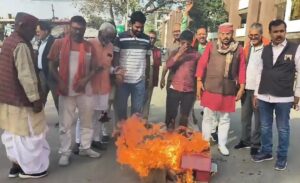 औरंगजेब की तारीफ करने पर आजमगढ़ में भाजपा के लोगों ने सपा नेता अबू आसिम आजमी का फुका पुतला