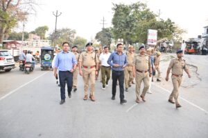 आजमगढ़:आगामी त्योहार- होली एवं रमजान को सकुशल एवं आपसी भाई चारे के साथ संपन्न कराने के दृष्टिगत जनपद में सुरक्षा एवं कानून व्यवस्था सुनिश्चित करने के उद्देश्य से मंडलायुक्त विवेक, डीआईजी सुनील कुमार सिंह, जिलाधिकारी नवनीत सिंह चहल, पुलिस अधीक्षक हेमराज मीना द्वारा संयुक्त रूप से कोतवाली से बड़ादेव, मातबरगंज, तकिया, चौक, पहाड़पुर का पैदल रूट मार्च किया गया।