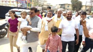 जानकी ,आराध्या, हर्षवर्धन के साथ बाजार में निकले सांसद स्थानीय दुकानदारों से खरीदी गुलाल- पिचकारी