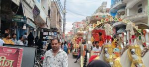 Azamgarh :लालगंज नगर में रविवार को नौ दिवसीय व पाँच कुण्डीय कलश यात्रा निकाली गयी