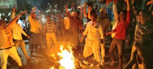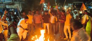 करणी सेना ने जीयनपुर चौक पर नारेबाजी कर फूंका पुतला