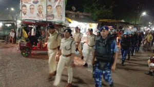 कानून व्यवस्था के संदेश के साथ जबलपुर पुलिस का फ्लैग मार्च, रजा चौक से भान तलैया तक दिखाई दी सख्त निगरानी