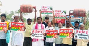 डीजल पेट्रोल गैस के दाम बढ़ाने को लेकर सपा कार्यकर्ताओं ने किया प्रदर्शन