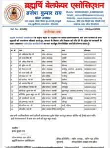 आजमगढ़:ब्रह्महर्षी वेलफेयर एसोसिएशन के नेतृत्व में प्रदेश कार्यकारिणी का हुआ गठन पूरे संगठन में खुशी की लहर