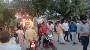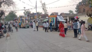 अंबेडकर प्रतिमा के पास पहुंचे जिसमें हाथी घोड़े डीजे के साथ ही आकर्षक ढंग से सजाई हुई झांकी लोगों के आकर्षण का केंद्र रही l आगे आगे हाथी घोड़े डीजे पर बजता अंबेडकर गीत और उसे जीत पर झूमते गाते स्त्री पुरुष व बच्चे चल रहे थे जो की मनोहारी दृश्य प्रस्तुत कर रहे थे l सभी गांव से जुलूस कंजरा मोड बाजार पर आकर अंबेडकर मूर्ति के पास एक सभा में बदल गया जहां सभी लोगों ने डॉक्टर भीमराव अंबेडकर जी की मूर्ति पर माल्यार्पण कर उन्हें श्रद्धा सुमन अर्पित किया l