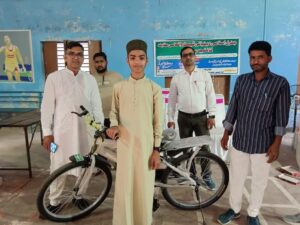 اس شاندار انعامی مقابلے میں جس طالب علم نے اول پوزیشن حاصل کی جس میں انعام کے طور پر طالب علم کی حوصلہ افزائی کےلئے ایک رینجر سایکل دی گئی ۔