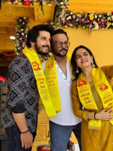 Mumbai:Celebrated television producer Rahul Kumar Tewary, the creative force behind several acclaimed shows, recently visited Bageshwar Baba along with the lead cast of his latest production, Udne Ki Aasha. The spiritual meeting took place during the auspicious inauguration of a new Bajrangbali temple in the city. Joining him were lead actors Kanwar Dhillon and Neha Harsora, who play the beloved characters Sachin and Sailee in the Rolling Tales Production show. The trio met Bageshwar Baba to seek his blessings for the show’s success and to mark this sacred occasion.