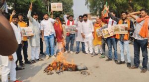 भाजयुमो ने फूंका पुतला,जताया विरोध