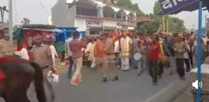 थाना प्रभारी विनोद सिंह की मदनपुर की विदाई शोभा यात्रा निकालकर की गई ।
