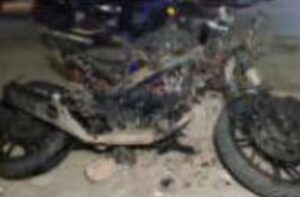 The absconding accused burnt the motorcycle with coal and created terror