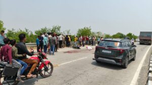 वाराणसी-गोरखपुर फोरलेन पर सड़क हादसा, बाइक सवार महिला की मौत