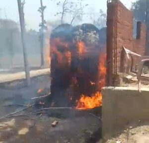 भीषण आग, से पशुओ के लिये रखा भूसा वे गेहूं जल कर हुआ राख।