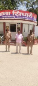 सुरेशचन्द गुप्ता पुत्र स्व0 रामकिशुन दास गुप्ता सा0 कुर्मी टोला थाना कोतवाली जनपद आजमगढ़ द्वारा दिये गये प्रार्थना पत्र अभियुक्त गण राजेश यादव पुत्र बलिहारी यादव सा0 हेंगापुर थाना सिधारी जनपद आजमगढ़ आदि 3 नफर द्वारा बैनामा करानें के नाम पर पैसे ले लेनां व जालसाजी व साजिश करके दस्तावेजों में कूटरचनां करके फर्जी बैनामा करा देनें के संबंध में थाना सिधारी पर मु0अ0सं0 74/2025 धारा 419/420/467/468/471/406/120बी भादवि पंजीकृत कराया गया था जिसमें अभियुक्त राजेश यादव पुत्र स्व0 बलिहारी यादव सा0 हेंगापुर थाना सिधारी, आजमगढ़ वांछित चल रहा था । आज गुरुवार को उ0नि0 राजबिहारी सिंह मय हमराह द्वारा मुकदमा उपरोक्त से सम्बन्धित वांछित अभियुक्त राजेश यादव पुत्र बलिहारी यादव सा0 हेंगापुर थाना सिधारी जनपद आजमगढ़ को अभियुक्त के घर से समय करीब 07.50 बजे नियमानुसार हिरासत पुलिस में लिया गया। गिरफ्तार अभियुक्त का चालान मा0 न्यायालय किया गया।