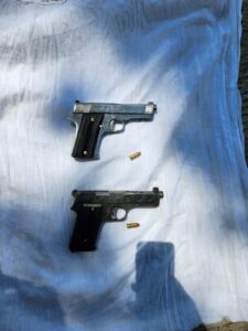 चौकी प्रभारी यादव कॉलोनी अनिल कुमार ने बताया कि क्राइम ब्रांच को विश्वसनीय मुखबिर से सूचना प्राप्त हुई है कि यादव कॉलोनी अन्तर्गत जीरो डिग्री मोनालीसा बार के पास पीपल पेड के नीचे काली शर्ट काली पेंट, काली केप पहने हुये एक युवक कोई अपराध करने की फिराक मे खडा है सूचना पर थाना एवं क्राइम ब्रांच की संयुक्त टीम द्वारा मुखबिर के बताये स्थान पर दबिश दी गई, जहां मुखबिर के बताए हुलिए का युवक पुलिस को देखकर भागने की कोशिश किया, जिसे घेराबंदी कर पकड़ा, जिसने पूछताछ पर अपना नाम लकी पटेल उम्र 22 वर्ष निवासी बी. एल. मैरिज गार्डन के पास कछपुरा माल गौदाम थाना लार्डगंज बताया, तलाशी लेने पर कमर में दोनों तरफ पिस्टल खोसे मिला, दोनों पिस्टलों को चेक करने पर 1-1 कारतूस लोड पाये गये। आरोपी लकी पटैल के कब्जे से 2 पिस्टल एवं 2 कारतूस जप्त करते हुए आरोपी लकी पटैल के विरुद्ध धारा 25, 27 आर्म्स एक्ट के तहत कार्यवाही की गई।