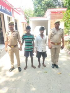 आज शुक्रवार को उ0नि0 निशिकान्त, मय उ0नि0 लालबचन राय मय हमराह द्वारा मुकदमा उपरोक्त में विवेचना से प्रकाश में आये अभियुक्त विक्की पुत्र राजेन्द्र राम निवासी बनकट थाना अहरौला जनपद आजमगढ़ उम्र करीब 22 वर्ष, 2. सन्नी उर्फ शनी पुत्र राजेन्द्र राम निवासी बनकट थाना अहरौला, जनपद आजमगढ़ उम्र करीब 19 वर्ष को चोरी गये आभूषण 1 अदद अंगूठी पीली धातु , 1 जोडी (2 अदद) पायल सफेद धातु , 1 अदद मांग टीका पीली धातु एक अदद चैन पीली धातु , एक अदद लाकेट पीली धातु , एक अदद अंगूठी पीली धातु , चार अदद बिछिया सफेद धातु , एक जोडी पायल सफेद धातु व एक अदद टुल्लू पम्प के साथ समय 02.40 बजे रात्रि में हिरासत पुलिस मे लिया गया । गिरफ्तार अभियुक्तों का चालान मा0 न्यायालय किया गया।