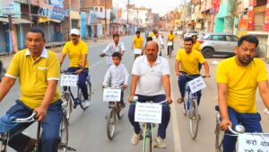 अताउल अंसारी की अध्यक्षता में निकली साइकिल यात्रा को वरिष्ठ चिकित्सक डॉ पन्ना लाल बिंद ने हरी झंडी दिखाकर रवाना किया।
