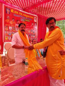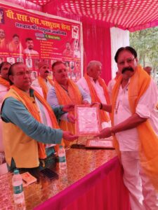 People congratulated social worker Arvind Pandey on being honored by Parashuramsena