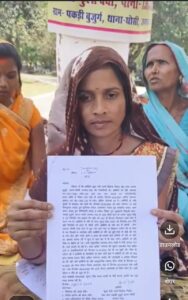 पति के पिटाई मे कार्यवाही न होने पर पत्नी कलेक्ट्रेट मे धरने पर बैठी।