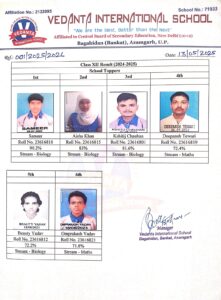 आजमगढ़:दोपहर में केंद्रीय माध्यमिक शिक्षा बोर्ड (CBSE) द्वारा कक्षा 10वीं एवं 12वीं के परीक्षा परिणाम घोषित किए गए। परिणाम आते ही छात्रों एवं वेदांता इंटरनेशनल स्कूल, बनकट (आजमगढ़) में खुशी की लहर दौड़ पड़ी। विद्यालय ने एक बार फिर 100% रिजल्ट के साथ अपने क्षेत्र का नाम रोशन किया।