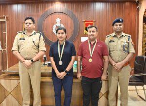 स्टेट शूटिंग प्रतियोगिता मे स्थान प्राप्त करनेवालर पुलिस कर्मियों को एसपी ने किया सम्मानित