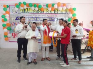 Dozens of students who got good marks in CBSE board were honored on Monday in the auditorium of St. Xavier's Public School, Amnaven, Martinganj. First of all, the program was inaugurated by garlanding the picture of Goddess Saraswati and lighting the lamp by Nagar Panchayat representative Saurabh Singh Beenu, Managing Director Saurabh Singh, Nitin, Principal RP Singh. On this occasion, 21 children who got the highest marks in CBSE board's high school and intermediate examination were honored, in which children who got first and second place were honored by giving bicycle, certificate and medal.