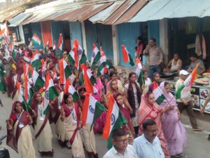 पूरा नगर देश भक्ति गीतों व नारो से गूंज उठा। लोगो मे देश भक्ति के प्रति जोश और जुनून देश लोगो मे देश भक्ति जाग उठी। यात्रा के दौरान नगर पालिका गेट के सामने सभी लोगो के ऊपर फूलों की बारीस की गई।