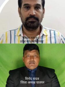 विनय महाजन प्रदेश संरक्षक तथा विनोद यादव जिला अध्यक्ष पालघर बनाए गये