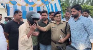 एसपी ट्रैफिक राहगीरों को बांटे हेलमेट,सड़क सुरक्षा का समाजसेवियों ने उठाया बीड़ा