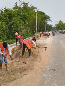 नगर पालिका क्षेत्र में युद्ध स्तर पर सफाई कर्मियों द्वारा रोड के किनारे की जा रही सफाई लोगों में बना कौतूहल