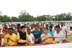 जनपद में 11वें अंतर्राष्ट्रीय योग दिवस-2025 के अंतर्गत योग सप्ताह का शुभारंभ आज स्वर्गीय रविंद्र किशोर शाही स्पोर्ट्स स्टेडियम में भव्य रूप से हुआ। “एक पृथ्वी, एक स्वास्थ्य” की थीम पर आधारित यह योग सप्ताह 15 जून से 21 जून तक मनाया जाएगा। कार्यक्रम का उद्घाटन सदर सांसद शशांक मणि त्रिपाठी द्वारा फीता काटकर किया गया। उन्होंने अपने संबोधन में कहा कि योग तन और मन दोनों को स्वस्थ रखने की प्रभावशाली विधा है। यह केवल शारीरिक अभ्यास नहीं, बल्कि जीवन के प्रति एक समग्र दृष्टिकोण है जिसे अब पूरी दुनिया ने अपनाना शुरू कर दिया है।