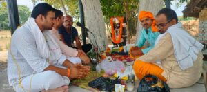 पंडित उदयप्रभाकर चौबे के द्वारा विधि विधान से मूर्ति स्थापना व हवन पूजन का कार्यक्रम मंत्रोच्चार से संपन्न कराया गया। युवा सामाजसेवी यशवंत यशपाल चौबे ने अहमदाबाद में हुई विमान दुर्घटना में मारे गए पूर्व सीएम विजय रूपानी सहित सभी देश व विदेशी यात्री के आत्मा के शांति के लिए लिए घी और साकला से आहूति दी जिससे दैवीय आपदा से लोगों की रक्षा हो सके वही लोगों के साथ विश्व शांति के लिए हवन पूजन किया कहा कि हमने क्षेत्र के अन्य गांवों में स्थित ऐसे धार्मिक स्थलों का जीर्णोद्धार कराने का पुनीत कार्य करने का वीणा उठाया है जो भी गांव स्तर के धार्मिक स्थल उपेक्षा के शिकार हैं। इस मौके पर सैकड़ो की संख्या में महिला वा बच्चो के साथ साथ सुनील,रवि,सुरेश, मोनू , सर्वेश, पंकज ,चन्द्रमोहन , कमलेश आदि लोग मौजूद रहे।