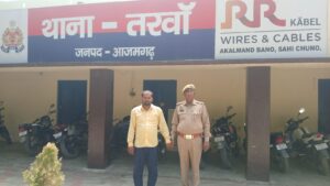 आज गुरुवार को उ0नि0 शिवम द्विवेदी मय हमराह द्वारा मुकदमा उपरोक्त से सम्बन्धित अभियुक्त विनोद कुमार यादव पुत्र सत्यनरायन यादव निवासी ग्राम उचहुंआ कोदोपुर थाना तरवां जनपद आजमगढ़ उम्र करीब 31वर्ष को उसके घर कोदोपुर उचहुआ से समय करीब 09.50बजे गिरफ्तार किया गया ।