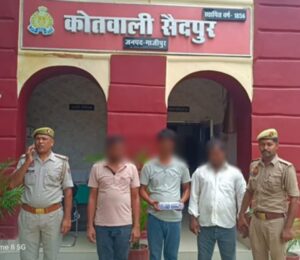 गाजीपुर। बीते दिनों सैदपुर थाना क्षेत्र अंतर्गत ग्राम टोडरपुर में आपसी रंजिश के चलते हुई फायरिंग के मामले में पुलिस को सफलता मिली है। पुलिस ने वारदात को अंजाम देकर फरार चल रहे तीन वांछित अभियुक्तों को गिरफ्तार कर लिया है। इनके कब्जे से एक देशी तमंचा .315 बोर, एक ज़िंदा कारतूस और स्प्लेंडर प्लस मोटरसाइकिल बरामद की गई है।