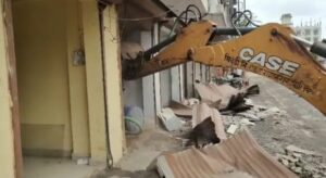 भिवंडी में अनाधिकृत निर्माण पर चला बुलडोजर, 12 अवैध दुकानें जमींदोज