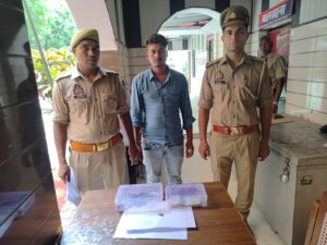 आज शनिवार को व0उ0नि0 रमेश कुमार, उ0नि0 जावेद अख्तर, उप0नि0 लाल सिंह मय हमराह द्वारा चेकिंग के दौरान गदनपुर हिच्छनपट्टी जाने वाले नहर या रास्ते पर पुलिया के पास से एक व्यक्ति पवन चौहान उर्फ विशाल चौहान पुत्र मटरू चौहान निवासी मेहमोनी थाना कप्तानगंज जिला आजमगढ उम्र करीब 24 वर्ष को . एक अदद नाजायज देशी तमंचा .315 बोर व 01अदद जिन्दा कारतूस .315 बोर व नगद कैश 4150/- रूपया के साथ समय 03.37 बजे पुलिस हिरासत में लिया गय़ा। गिरफ्तार अभियुक्त का चालान मा0 न्यायालय किया गया है।