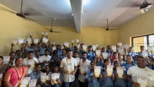 भिवंडी-भिवंडी में विद्यार्थियों को प्रोत्साहित करने एवं शिक्षा प्रति जागरूकता लाने के लिये जन कल्याण चैरिटेबल ट्रस्ट, व्दारा भिवंडी धामणकर नाका स्थित श्री सत्यनारायण हिंदी हाई स्कूल के लगभग ५०० बच्चों को निशुल्क नोटबुक वितरण किया गया। नोटबुक वितरण के दौरान स्कूल के विद्यार्थियों के चेहरे पर खुशी और उत्साह का माहौल देखा गया। इस कार्य की लोंगों ने सहराना करते हुए कहा कि ऐसे कार्यक्रम से बच्चे आपना पन महसूस करते है।
