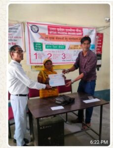 प्रधानमंत्री जीवन ज्योति बीमा योजना के तहत उत्तर प्रदेश ग्रामीण बैंक बिंद्रा बाजार द्वारा लाभार्थी को दिया गया 2 लाख का चेक