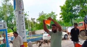 पेट्रोल पंप में लोगो के वाहनों में डाला जा रहा पानी