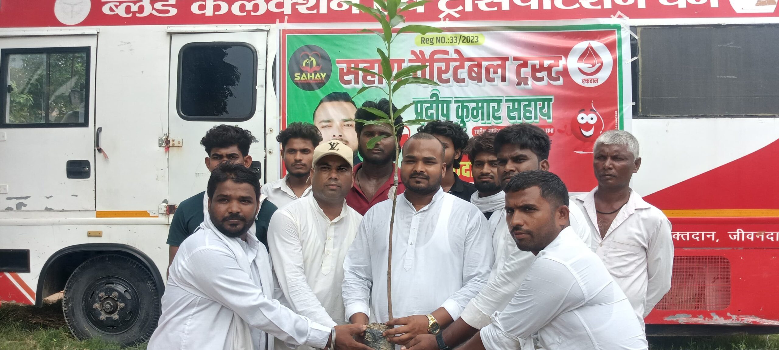 Azamgarh news :Distribution of fruit trees took place after blood donation on Pradeep Sahay's birthday