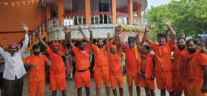 Azamgarh news:A group of Kanwarias left for Deoghar from Rampur village, the area echoed with the chanting of Har Har Mahadev